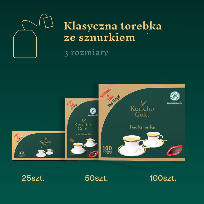 Czarna Herbata Kericho Gold to specjalna mieszanka szlachetnych herbat pochodzących z jednych z najlepszych plantacji herbaty w Kenii, które zostały starannie wyselekcjonowane przez doświadczonych testerów herbaty ze względu na bogactwo ich smaku, aromatu. Co tydzień degustatorzy firmy skrupulatnie sprawdzają jakość herbat, aby zapewnić utrzymanie wysokich standardów, gwarantując za każdym razem doskonałą filiżankę herbaty.